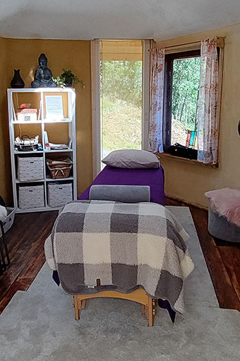 Otan nyt vastaan asiakkaita myös uudessa, rauhoittavassa hoitotilassa Raisiossa. Healing Temple on lämminhenkinen ja kutsuva pieni temppeli, jossa hoidot tapahtuvat luonnon keskellä – tähtitaivaan ja peltojen sylissä. Tila on suunniteltu pysyvästi hoitokäyttöön, ja siellä teen shiatsuhoitoja, Bemer-hoitoja sekä energiahoitoja.